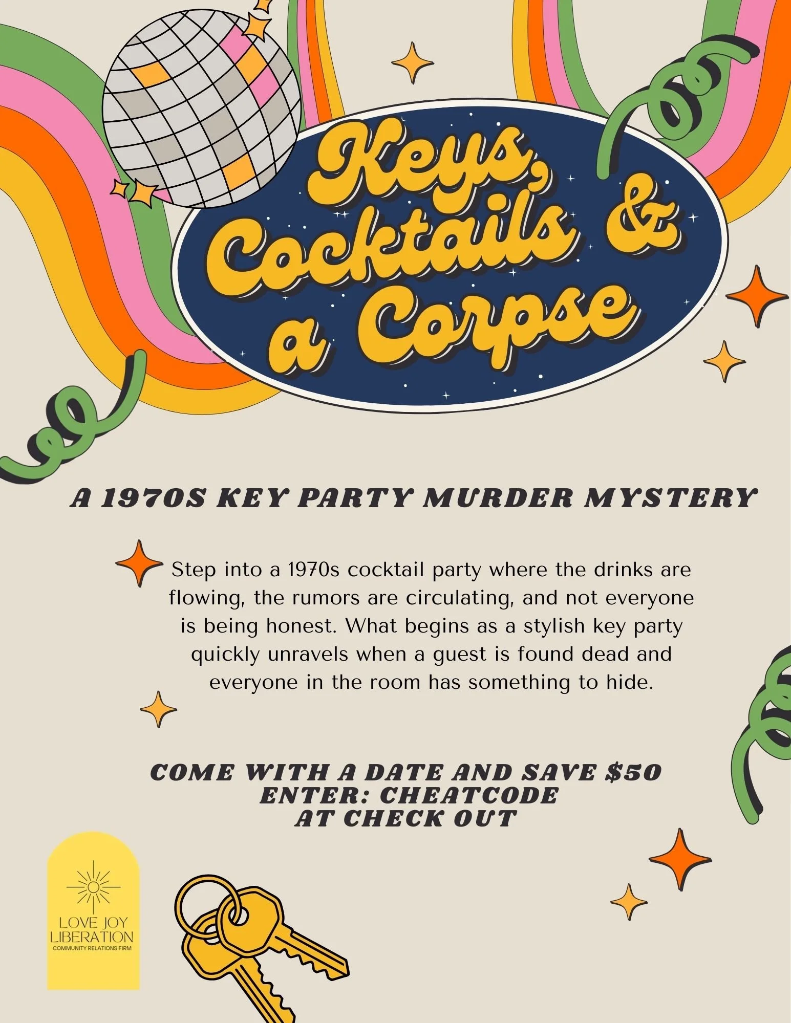 Guests are encouraged (but not required) to come in 70s themed costume and character